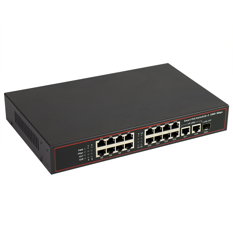 Gigabit 1 optical 16 electrical/2 optical 24 electrical POE power supply switch provides 16-24 Gigabit POE electrical ports + 2 Gigabit SFP ports. The POE electrical ports support IEEE 802.3af/at power supply standards.