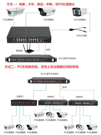 POE switches are widely used in education, medical, government, finance, electricity, operators and the Internet for wireless AP access, surveillance camera access or other equipment that requires POE power supply. They provide remote power supply in POE and POE+ mode, solving the problem of power cables being unable to be laid or being inaccessible to the greatest extent.